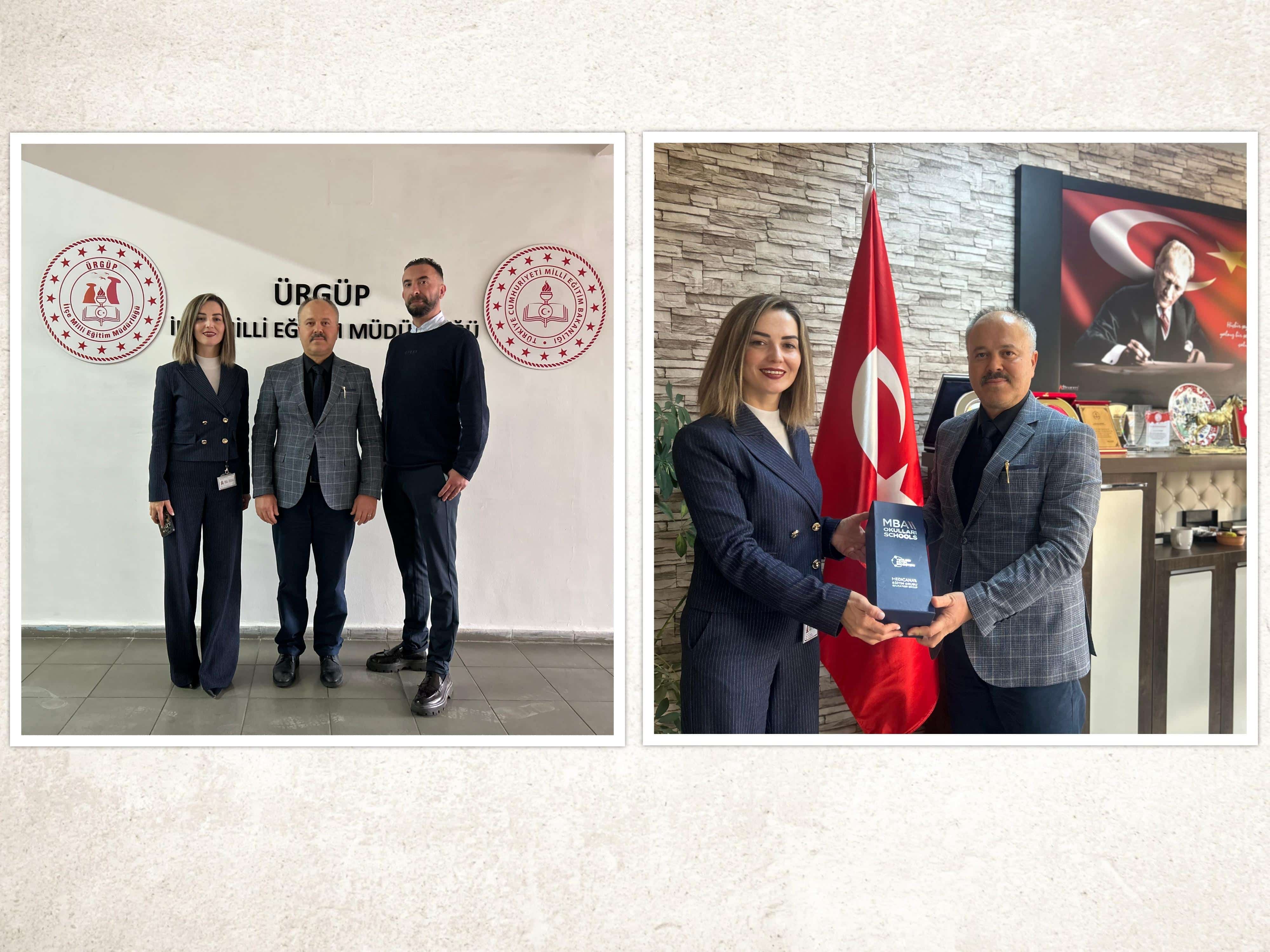 MBA Nevşehir okulları Kampüs Müdürü Özge MOLLAOĞLU ve Mehmet ÖZKAYA, İlçe Millî Eğitim Müdürümüz Sayın Savaş ÖZDEMİR'i makamında ziyaret etti.